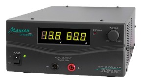 3. All Manson switch-mode power supplies have proven to be very reliable and NONE have been returned faulty under warranty in the last 10 years. Manson engineers say that the biggest problem they have with a power supply failing is with people trying to charge batteries and connecting them with reverse polarity! Please TAKE CARE and ask us for instructions.